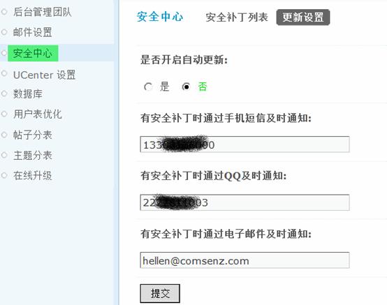 有安全补丁时通过手机短信及时通知: 填写接收短信的手机号码,这样如果官方有安全补丁发布后会及时给您的手机发送短信。