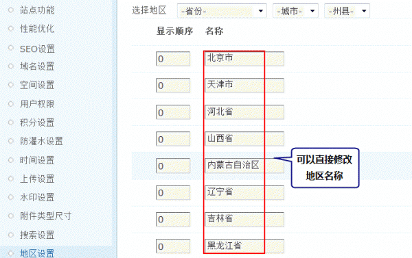 站长或者管理员可以自己编辑地区数据、根据所在地区的不同,增加、删除和修改地区名称等。可以用于会员个人资料中的出生地、居住地等处,有了这些地区信息,会员不需要自己手动填写,只要选择就可以了非常方便、快捷。