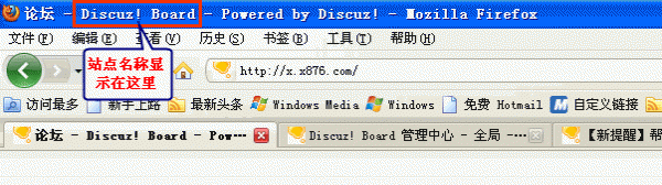 答案1:“站点名称”,设置之后将显示在导航条的标题中,效果如下: