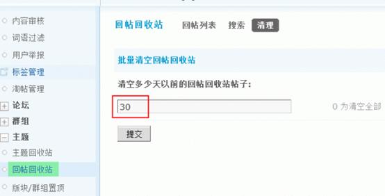 清理功能可以对回帖回收站中删除时间超过了指定天数的帖子进行清空。避免回收站过大,占用太多数据库空间。