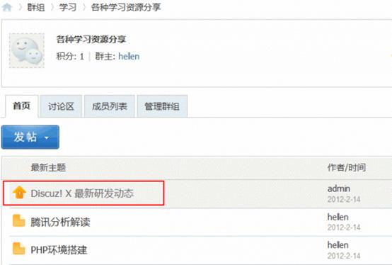 添加完成后,指定的主题将会在目标论坛版块/目标群组分类中置顶显示,如下图所示:
