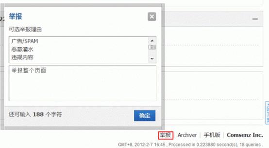 也可以在访问某个帖子时,对该帖子内容进行举报操作,如图: