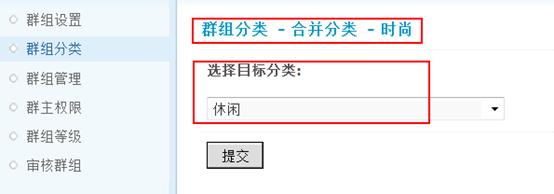 对群组分类进行合并时,选择将要合并的目标分类,合并操作将会把原分类下的所有群组转移到目标分类下,并删除原分类。