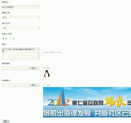 顶部图片:该群组的顶部图片,可以使群组的表现力更加丰富,用户可以选择能够体验群组特性的个性化图片装饰群组页面。在前台的显示效果为: