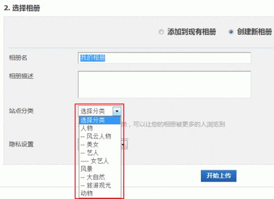 添加子分类和添加分类的方法一样,分类添加好以后,会员创建相册的时候就可以选择相册分类了