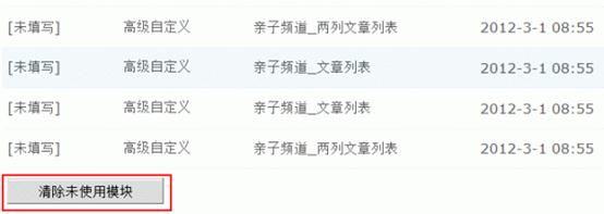 如果模块从未使用过,可以通过“清除未使用模块”按钮,删除未使用的模块,如下图所示: