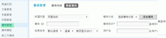 操作路径:【后台】=>【门户】=>【模块管理】点击数据调用,如下图所示:
