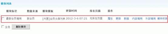 按照要求设置,添加成功后,可以在【后台】=>【门户】=>【模块管理】=>【数据调用】中看到,如下图所示: