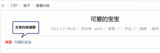 文章内容页显示摘要:设置此频道下的文章内容页是否显示摘要,如果选择“是”会员在发布文章后效果如下: