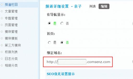 说明:如果站点的频道开启了二级域名,这里可以设置频道的二级域名。