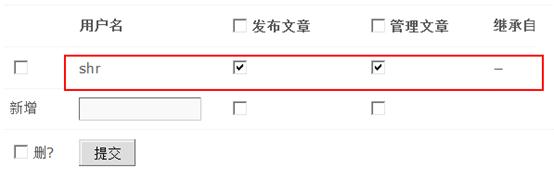 点击频道栏目后的“权限”链接即可添加对该频道中文章有管理权限的用户。