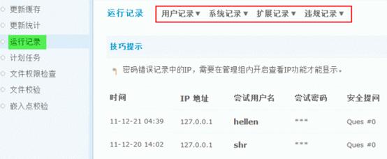 想让站点能健康稳定的运行,就要经常对论坛的运行情况进行监控。运行记录提供了记录站点各个运行状态的功能。当遇到一些故障的时候,不妨来看看运行记录。