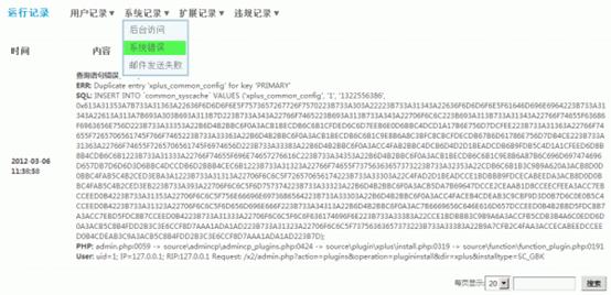 系统错误记录着站点在运行状态中,出现的数据库错误,ftp 远程附件上传错误。这个记录可以帮助我们了解站点的运行情况。以通过页面右下角的搜索您需要的系统错误信息。