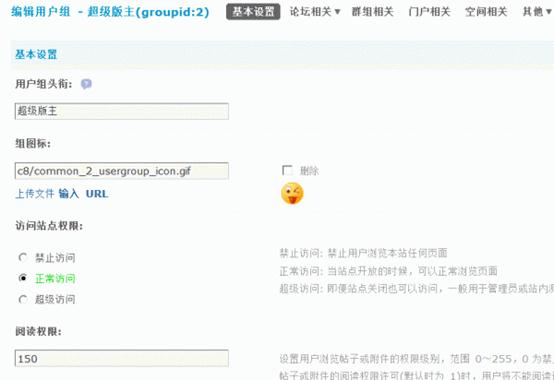 4)阅读权限:设置用户浏览帖子或附件的权限级别,范围 0~255,0 为禁止用户浏览任何帖子或附件。当用户的阅读权限小于帖子或附件的阅读权限许可(默认时为 1)时,用户将不能阅读该帖子或下载该附件。