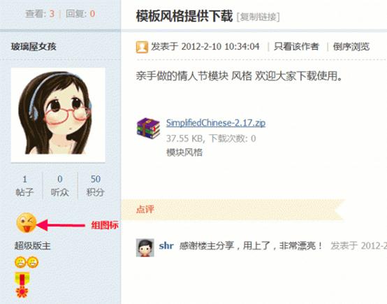 17)允许自定义头衔:设置是否允许用户设置自己的头衔名字并在帖子页面中显示。选择“是”用户在【个人资料】中设置自己的头衔后效果如下: