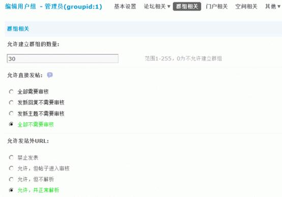 3)是否允许发站外URL:是否允许发帖包含URL,合理的设置可以有效的减少广告帖的量。