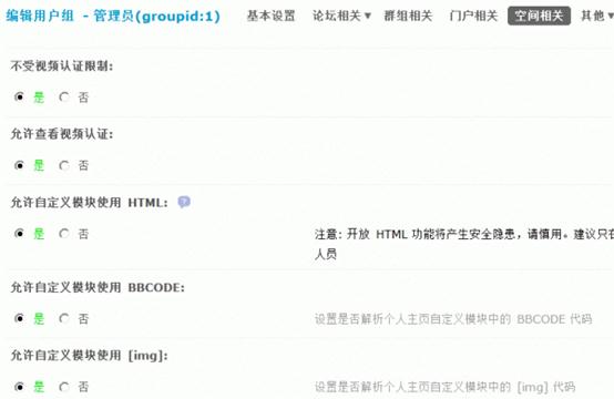 15)允许自定义模块使用[img]:设置是否解析个人主页自定义模块中的 [img] 代码。