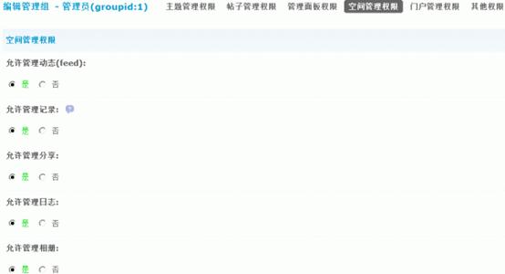 1)允许管理动态(feed):是否允许管理空间中产生的 feed。