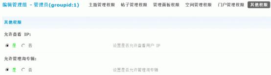 这里可以设置是否允许查看用户 IP,以及是否允许管理淘专辑。