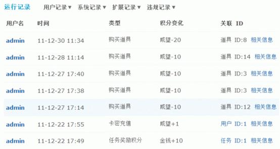 这里可以直接修改用户的积分数,点击“提交”即可生效。