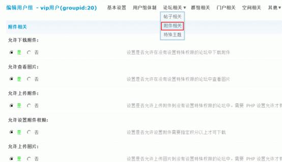 3)允许上传附件:设置是否允许上传附件到没有设置特殊权限的论坛中。需要 PHP 设置允许才有效,请参考管理中心首页
