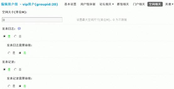 3)发表记录:是否允许在个人空间中发表记录,选择“是”则可以设置发表记录是否需要审核。