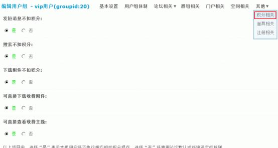 3)下载附件不扣积分:设置下载附件是否按照积分规则扣积分。