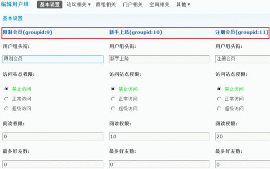 5)最多好有数:该用户组的用户能够拥有的最多好友数量,0为无限。