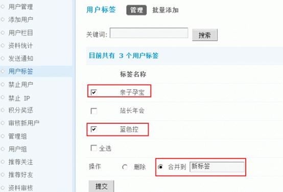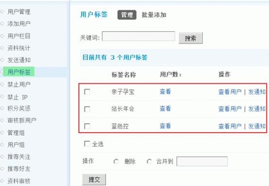 在Discuz! X3.4 X3.3 X3.2中我们增加了用户标签功能,可以批量给会员打上标签,划分不同的用户群体,这样就可以方便的推送相关内容了。
