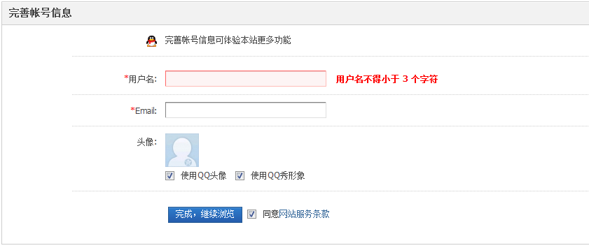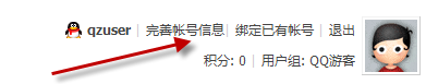 开启了QQ互联的站点在首页右上方的登录框左侧会显示“用QQ帐号登录”的图标,如下图所示: