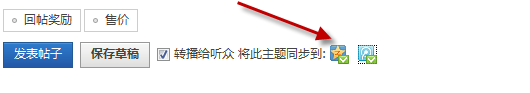发帖时可以将动态发送到QQ空间和腾讯微博,在“发表帖子”按钮右侧有将主题同步到QQ空间和腾讯微博: