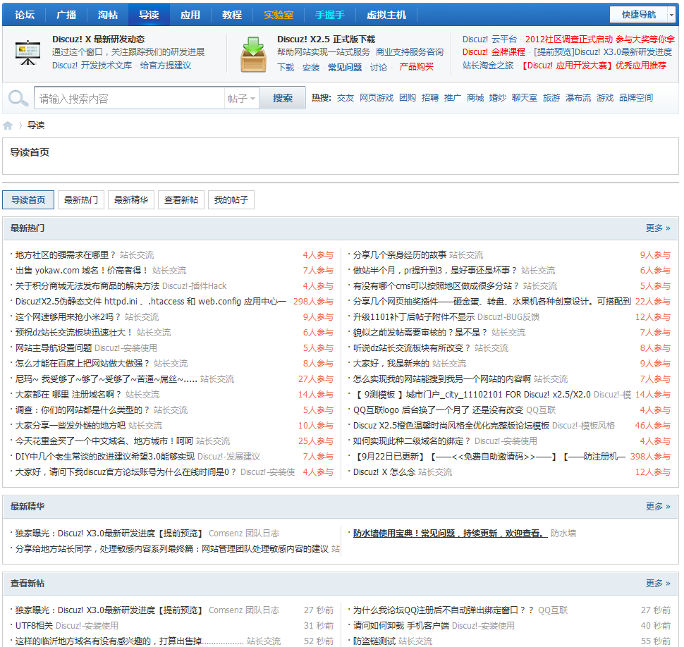 导读首页:导读首页汇集了最新热门、最新精华、新帖以及我的帖子,可以通过导读来查看自己想要查看的帖子