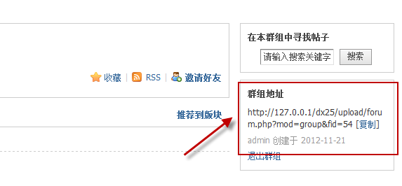 推荐到版块:将群组推荐到论坛的版块,将会以推荐群组显示到主题列表区域上方
