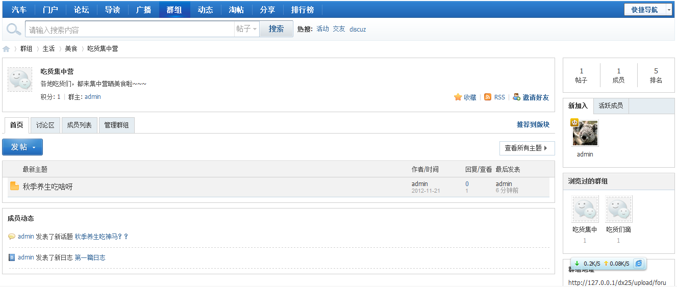 点击群组名,进入群组内容页面,在这里可以和有着共同话题的人们畅所欲言。群组内容页提供了以下各项内容:
