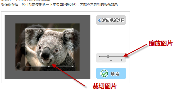 使用默认头像,无法彰显自己的个性,用户可以自己上传一张新照片来作为自己的个人头像,系统提供了 “选择图片”或是“拍摄图片“两种上传方式,选择文件后,缩放切割所需的区域,保存即可