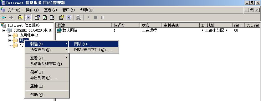 启动 IIS 管理器,并新建一个网站(虚拟主机);
