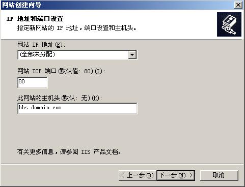 网站 IP 地址不用填写,端口如没有特殊要求则保持 80 即可,最后正确输入网站域名。