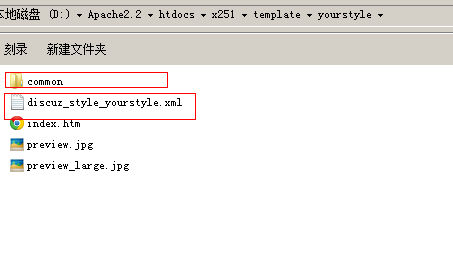如上图, 我现在进行最简单的修改, 此扩展风格只对应了默认模板 default 下的 common 文件夹。common 中只有一个 header.htm 文件, 也就是说在应用这套模板后, 由于它只对应默认模板 default 下面的 common/header.htm, 所以应用此套模板后只能读到 header.htm 头部模板文件, 而其他的如果没有全部自动调用 template/default 下的模板文件。